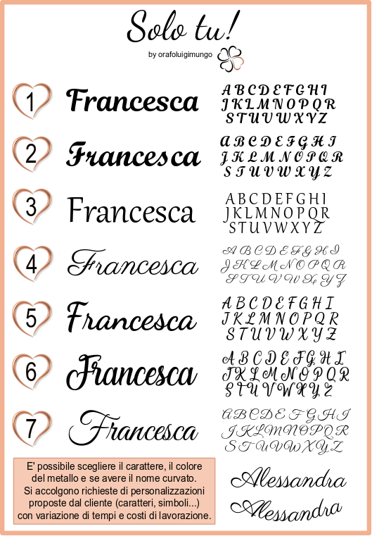SI PREGA DI INSERIRE IL NOME DA REALIZZARE durante il COMPLETAMENTO DELL'ORDINE, al momento del Pagamento nella sezione SCRIVI UN MESSAGGIO AL VENDITORE